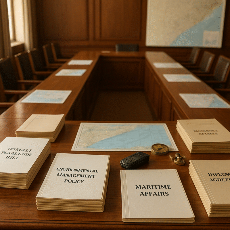 Mogadishu, Somalia – The Federal Government of Somalia’s Council of Ministers convened for its regular session today, presided over by Prime Minister Hamza Abdi Barre, adopting pivotal legislation and international agreements crucial to the nation’s legal and environmental frameworks.